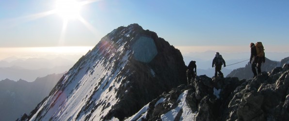 the rise of le Grand Pic of la meije 3983 m and crossing the ridges. This is the really important race in a life of Mountaineer. the difficulties of climbing are not extreme, but must be at ease in climbing in 4 big and ready for a long day (happiness).
